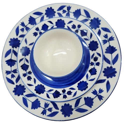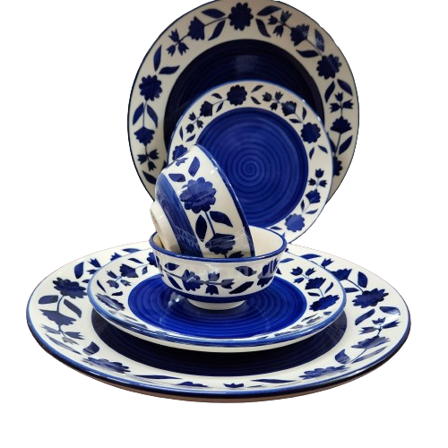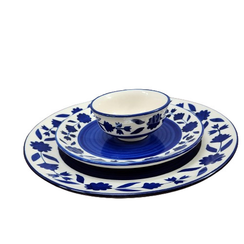 Ceramic Dinner Set Glossy Finish 2 Dinner Plate, 2 Side Plate and 2 Bowl Set (Blue-White Printed)
