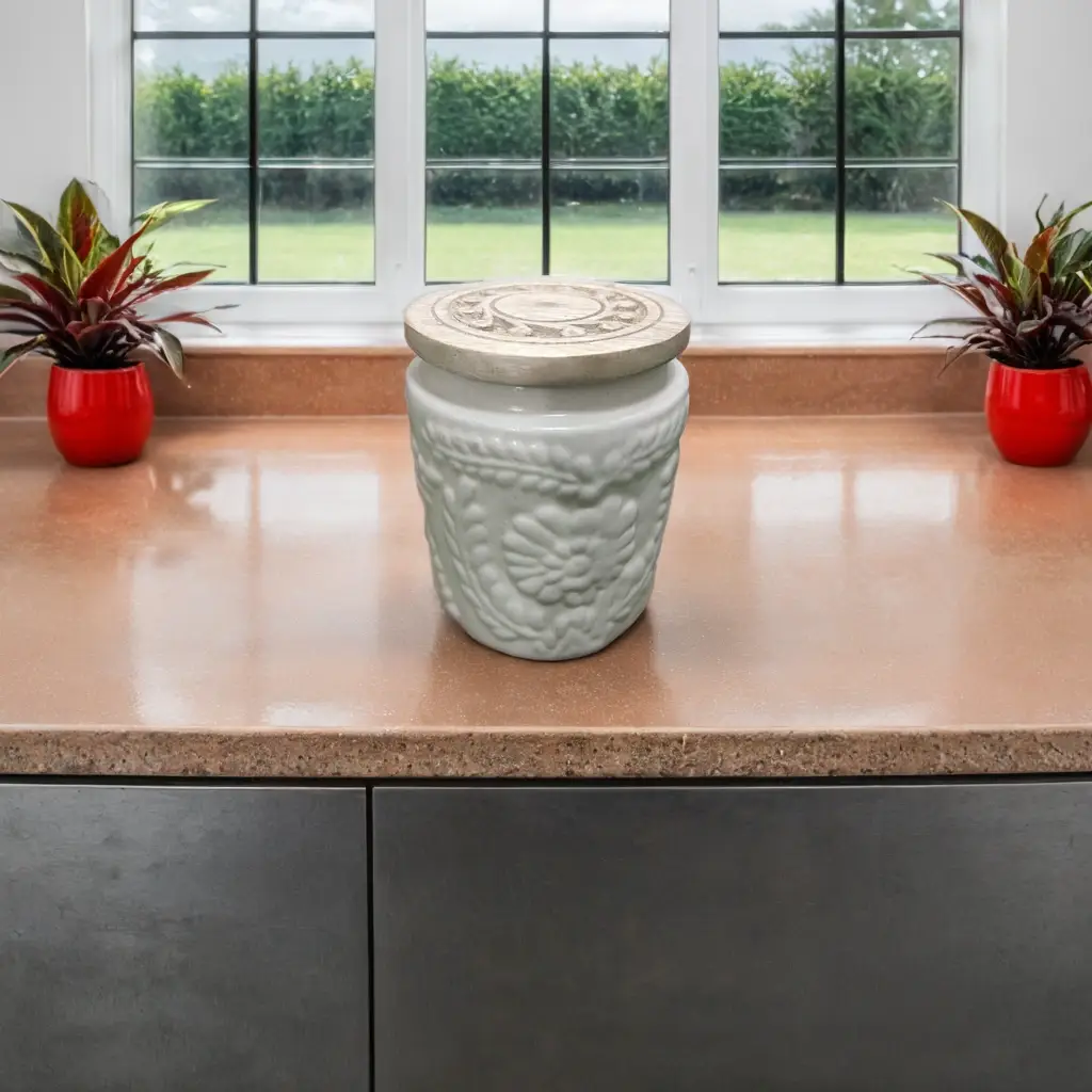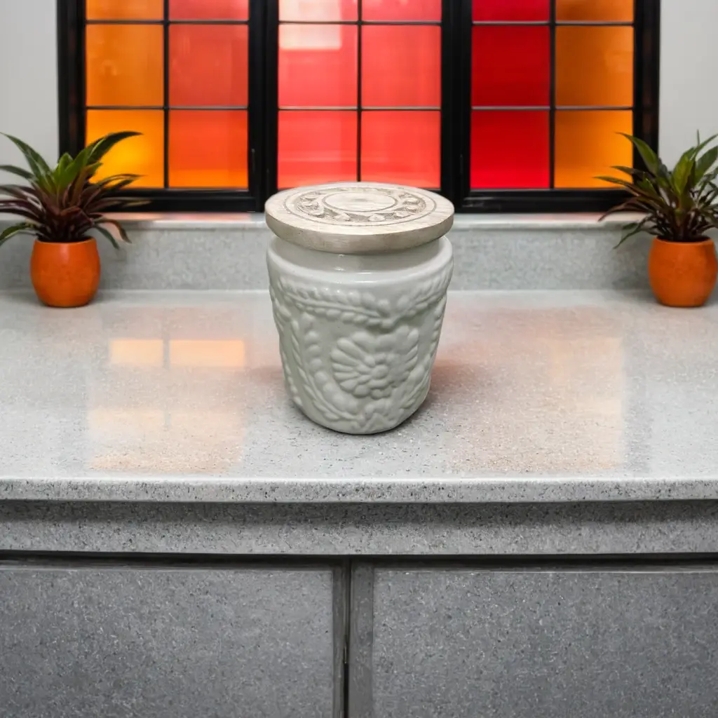 Airtight Wooden Lid – Keeps contents fresh and moisture-free.