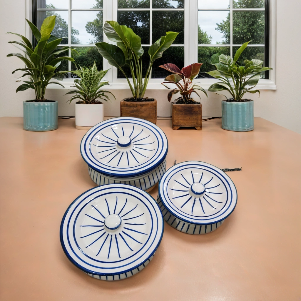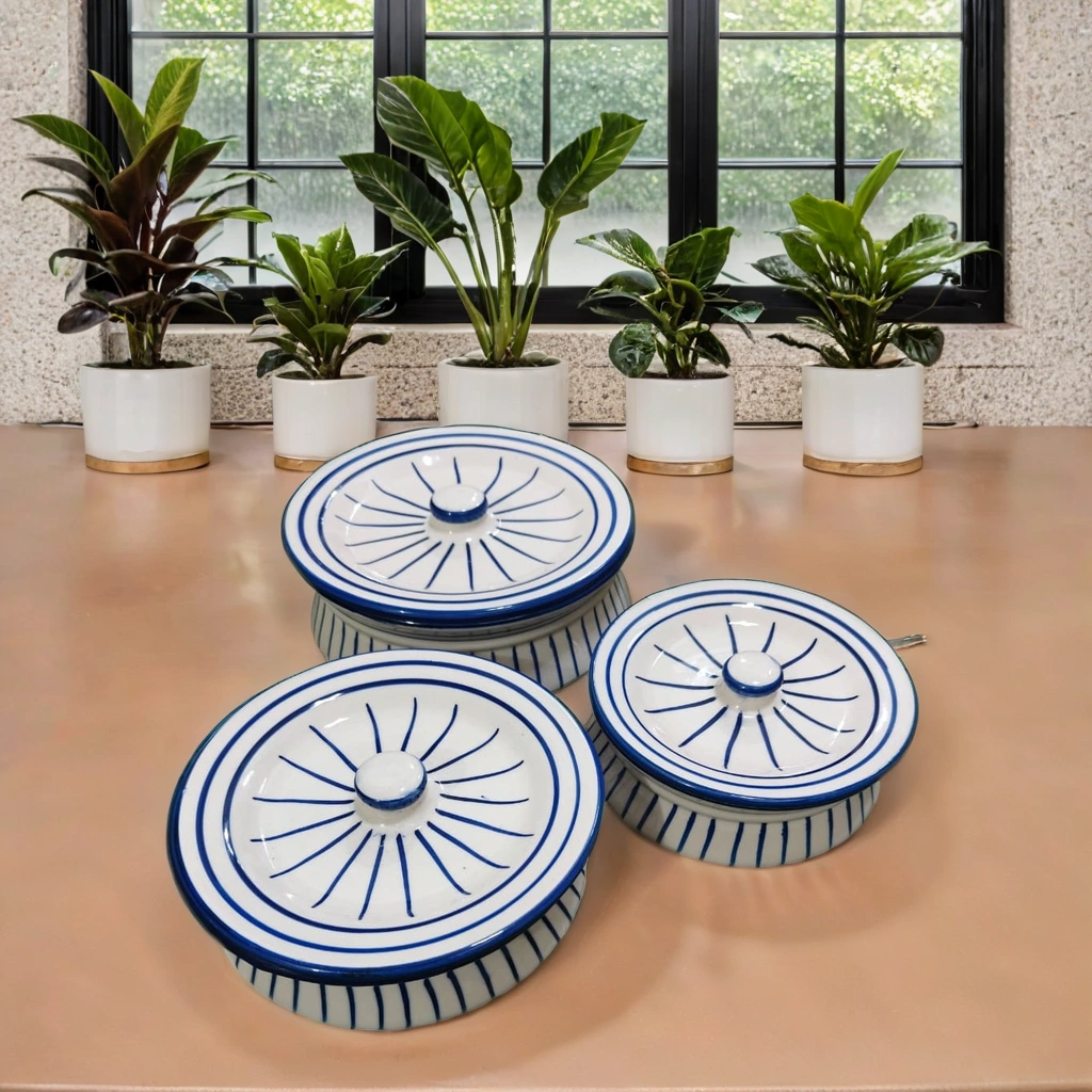 Chronic Decor Ceramic Degchi Set of 3 (Blue-White)