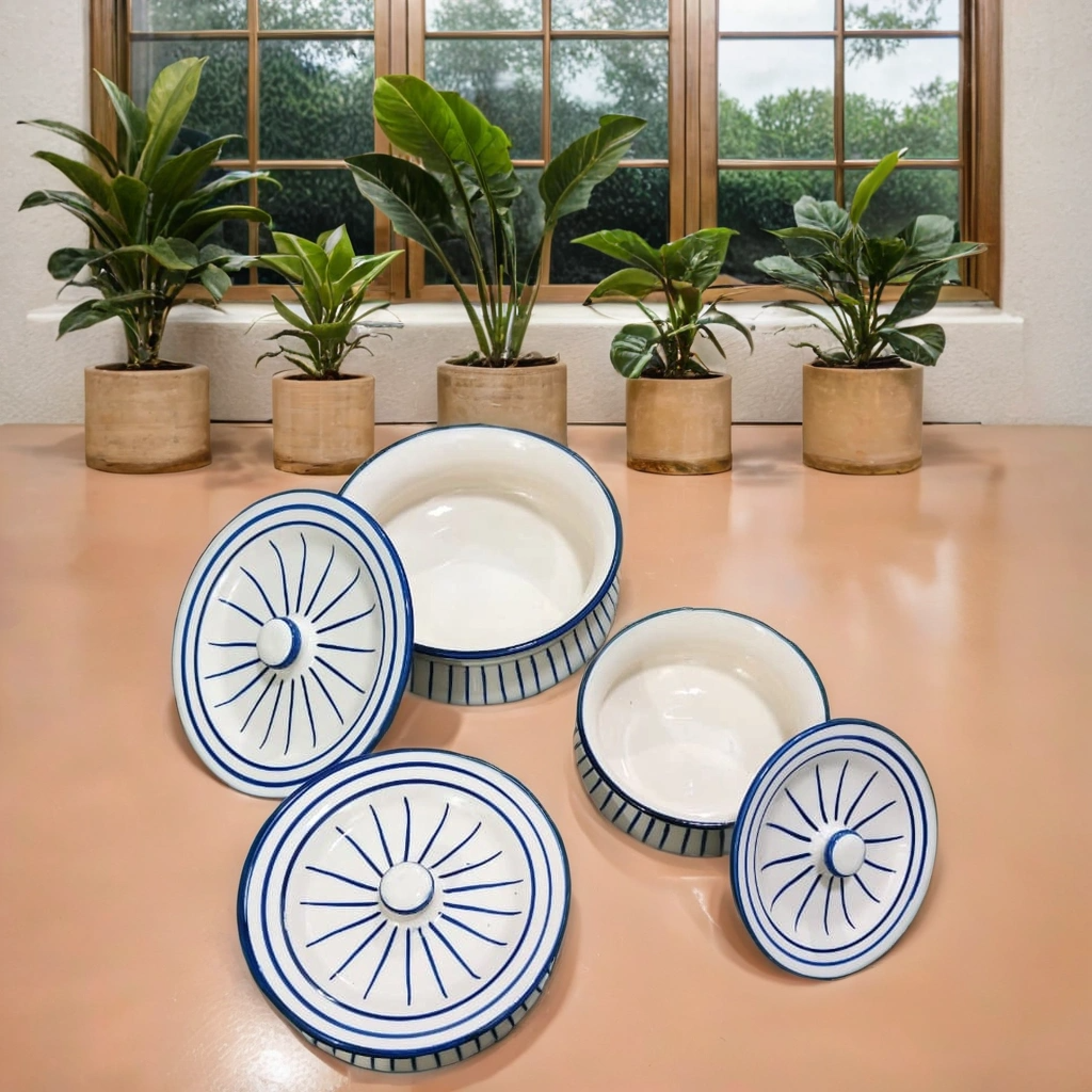 Chronic Decor give your storage a modern boost with this hand-crafted ceramic degchi set. Handmade ceramic pot that comes with a lid, making it easy to pick up and place. It can also be used to serve everyday knick-knacks, Idli,wada, poha,biryani, momo etc. making it easily serve food. The ceramic casserole/ Container, microwave and oven friendly, the ceramic serving pot can be quite a fashionable addition to one’s kitchen collection with the attractive texture embossed on it.