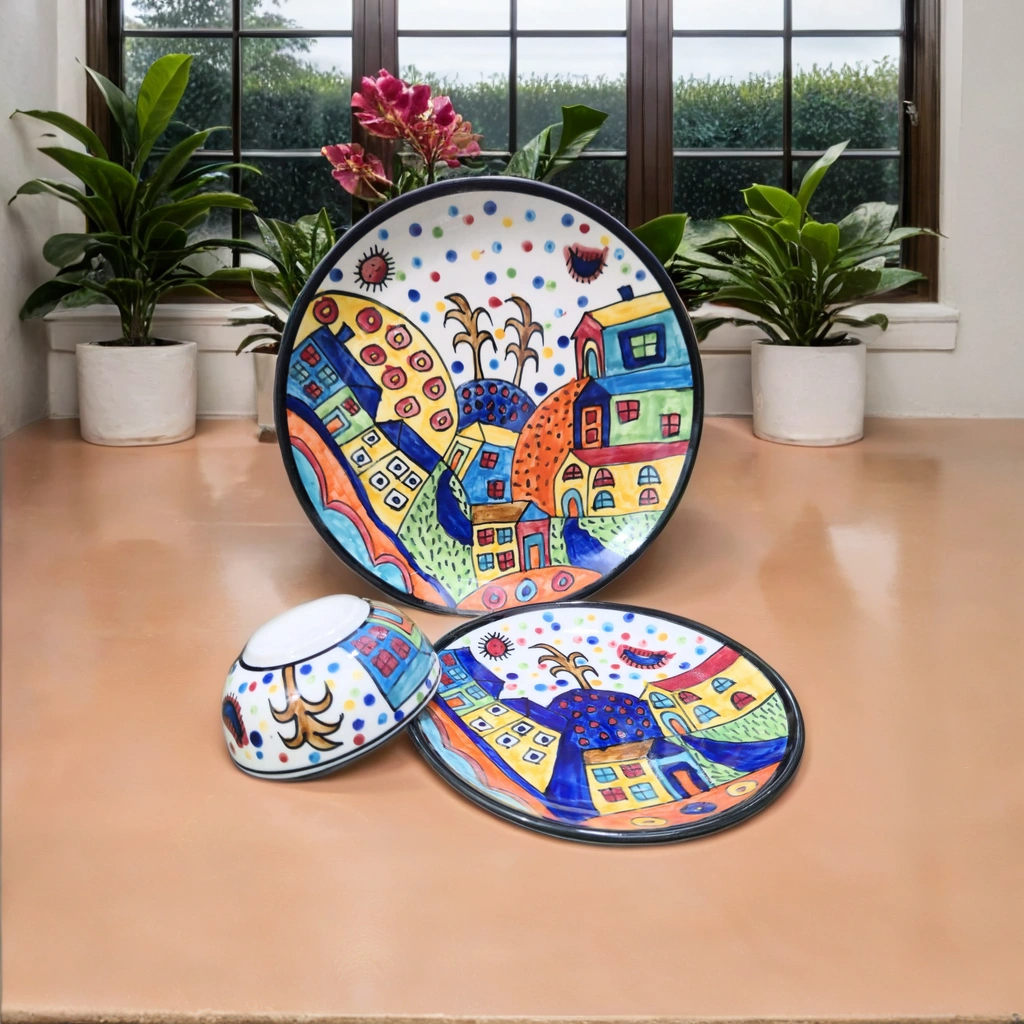 Chronic Decor Exclusive Hand-Painted Ceramic Dinner Set – 10-Inch Plates (1PC), 7-Inch Plates (1PC), and Bowls (1PC)