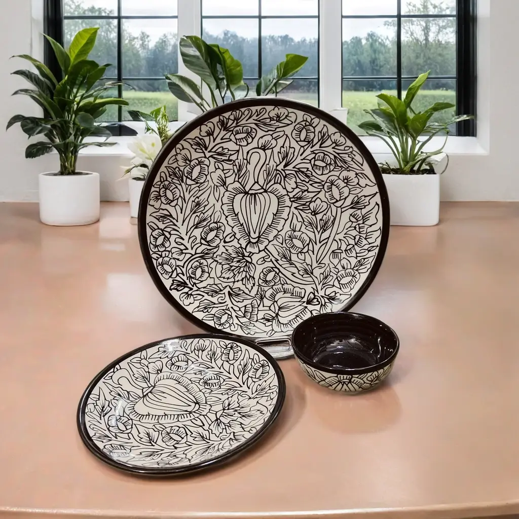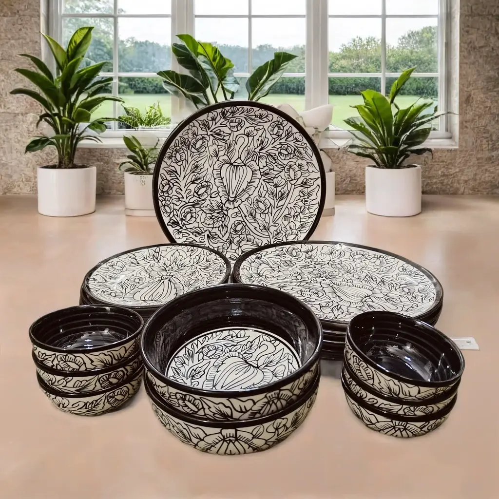 Chronic Decor proudly presents our Hand-Painted Ceramic Dinner Set, a harmonious blend of traditional artistry and modern functionality. This 20-piece collection includes six 10-inch dinner plates, six 7-inch quarter plates, two serving bowl and six bowls, each meticulously crafted to elevate your dining experience.